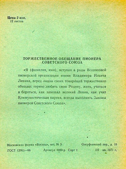 Это я вижу! Я не могу понять, какого года это обещание. Я вступала в пионеры в 70-е, у нас уже был несколько иной текст. А этот, на фото, получается был раньше?
