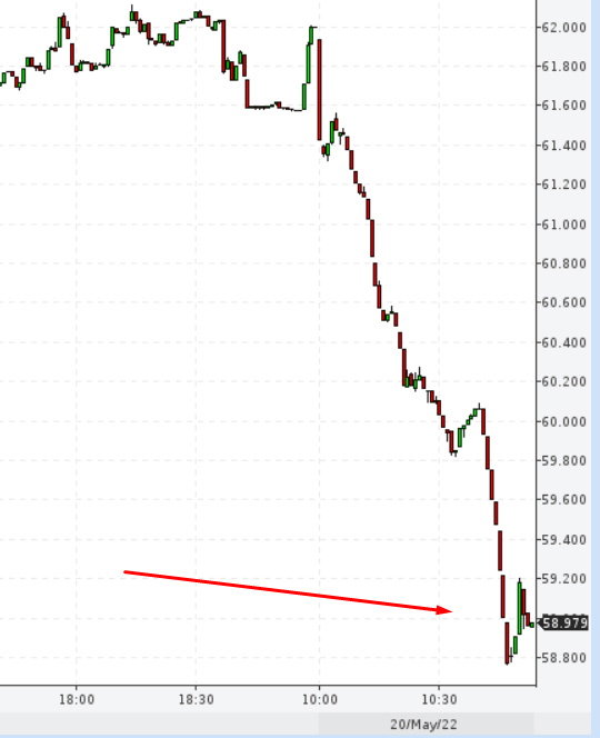 И продолжает держать на уровне чуть ниже 59 рублей за 1 доллар США.