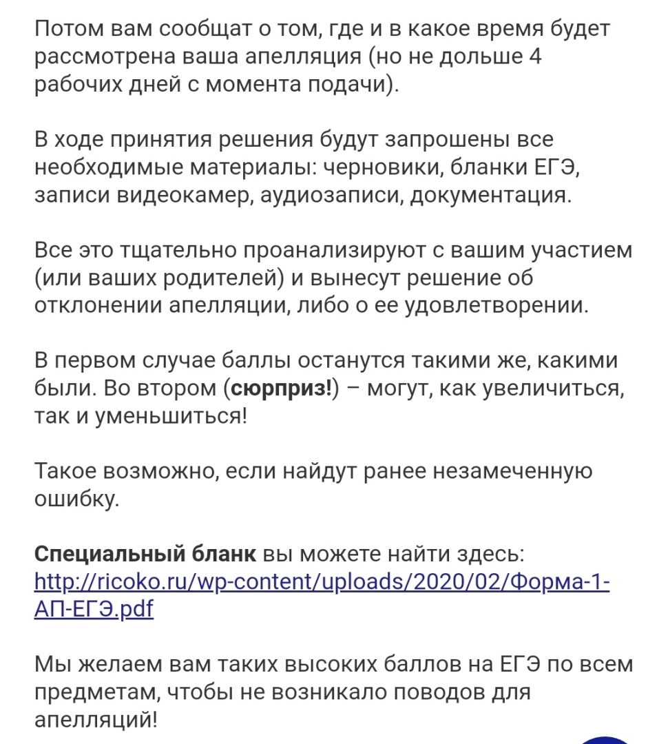 Впереди ЕГЭ, если не согласны с результатами, или что-то помешало здраво мыслить при экзамене, подавайта на аппеляцию, не бойтесь.