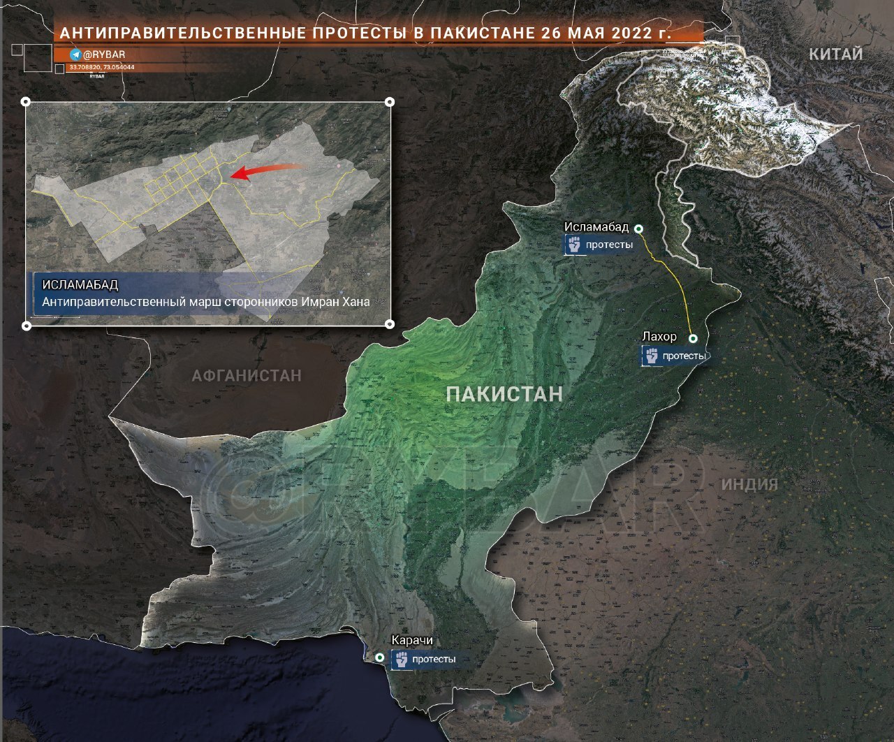 ▪️ 22 мая экс-премьер-министр Пакистана Имран Хан призвал сторонников к маршу 25 мая из Лахора в пакистанскую столицу Исламабад и блокированию правительственного района D-Chowk до тех пор, пока не будут проведены выборы.