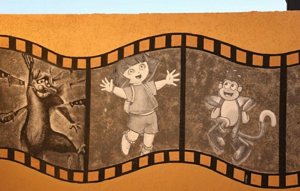 на стене у киностудии Даша-путешественница в неповторимом местном стиле