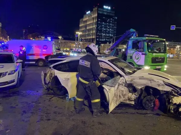 В Москве гонщики протестировали новый Chevrolet Camaro, но не справились с управлением и на полной скорости влетели в скромно стоящий трактор