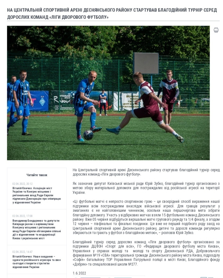 НА ЦЕНТРАЛЬНІЙ СПОРТИВНІЙ АРЕНІ ДЕСНЯНСЬКОГО РАЙОНУ СТАРТУВАВ БЛАГОДІЙНИЙ ТУРНІР СЕРЕД ДОРОСЛИХ КОМАНД «ЛІГИ ДВОРОВОГО ФУТБОЛУ»