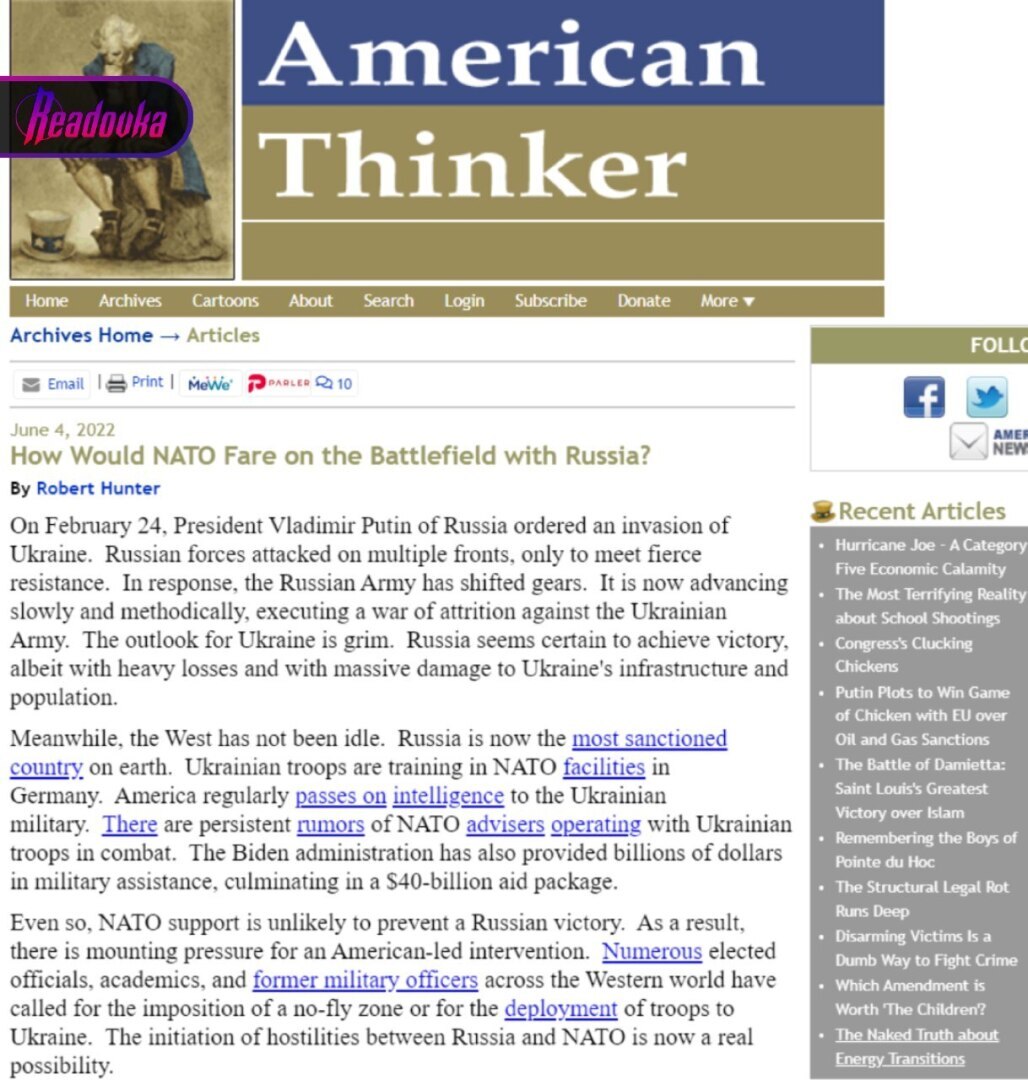 К такому выводу пришел американский журналист American Thinker, который проанализировал боевое состояние Европейских стран — участниц НАТО и вооруженность России и ее действия на Украине. На фоне требований западных стран вмешаться в конфликт столкновение НАТО и России становится возможным, рассуждает автор статьи.