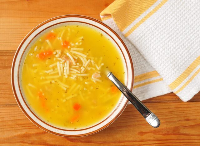 Та же проблема, которая преследует вашу еду длительного хранения, может быть обнаружена с вашей лапшой быстрого приготовления. Попробуйте купить яичную лапшу и бульон с низким содержанием натрия, чтобы приготовить более питательную версию.
