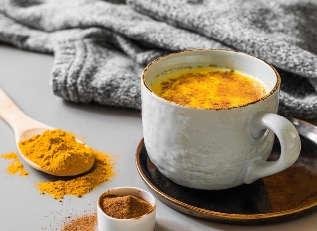 Или попробуйте теплое молоко с куркумой , приготовленное из миндального молока и кокосового масла (для жирности). Смешайте в кастрюле следующие ингредиенты, доведите до кипения, затем убавьте огонь и варите 10 минут: 2 стакана несладкого миндального молока, 1 ст. меда (по желанию), 1 столовая ложка кокосового масла, 1 чайная ложка молотой куркумы, 1 чайная ложка молотой корицы, щепотка черного перца и свеженатертый имбирь. Делает 2 порции.