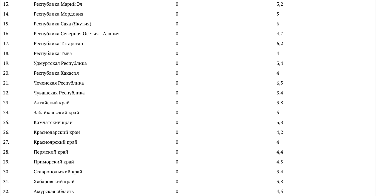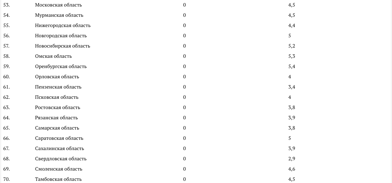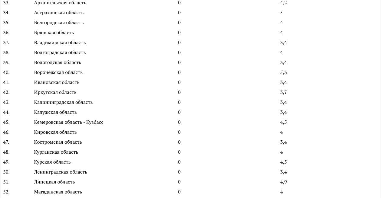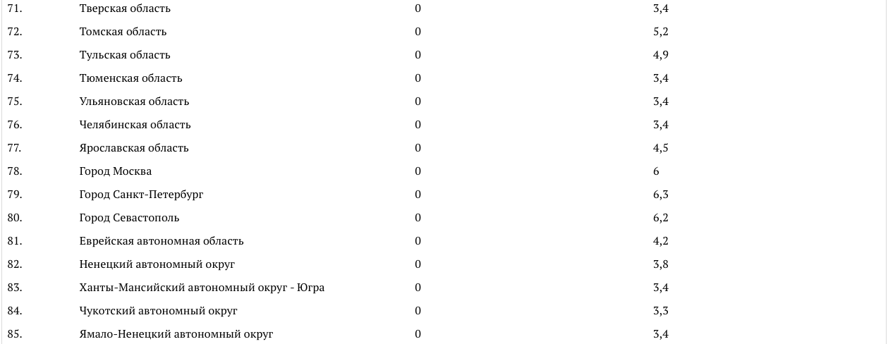 Таблица индексов повышения оплаты услуг ЖКХ по регионам России