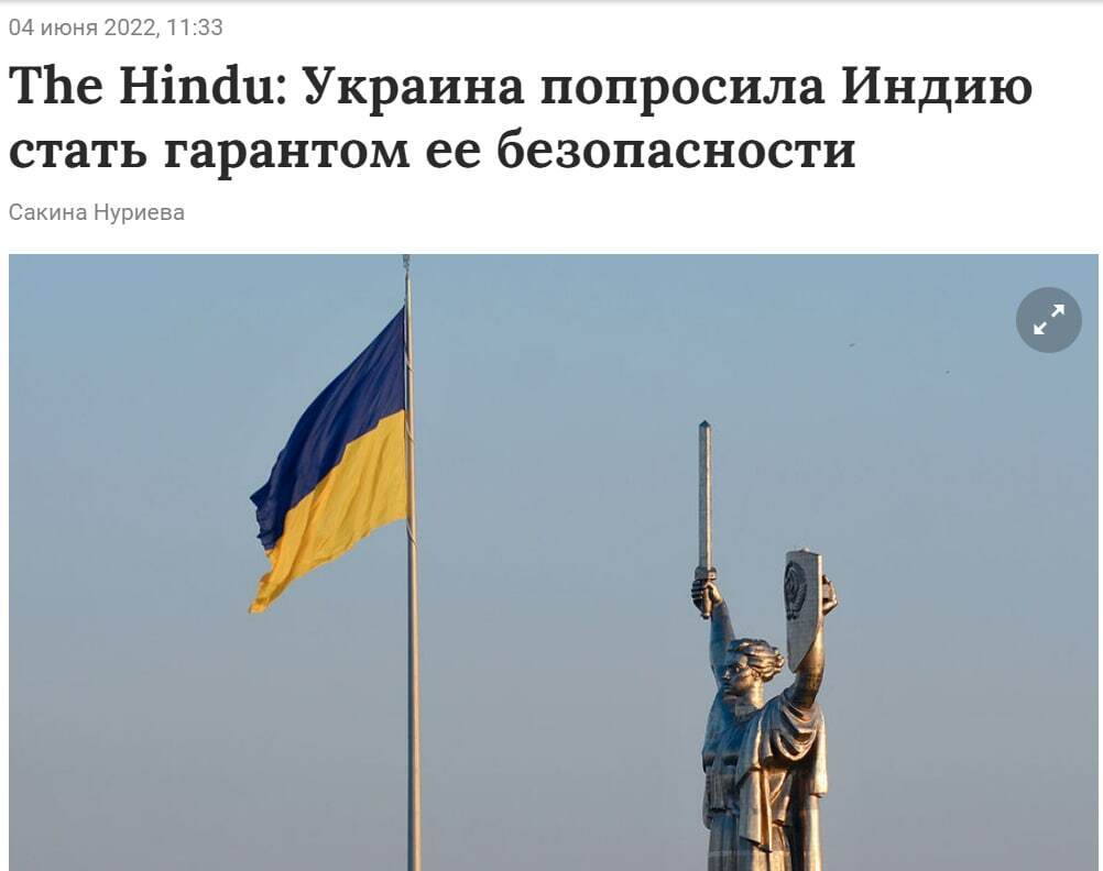 Украина попросила Индию стать одним из гарантов ее безопасности, —индийская газета The Hindu