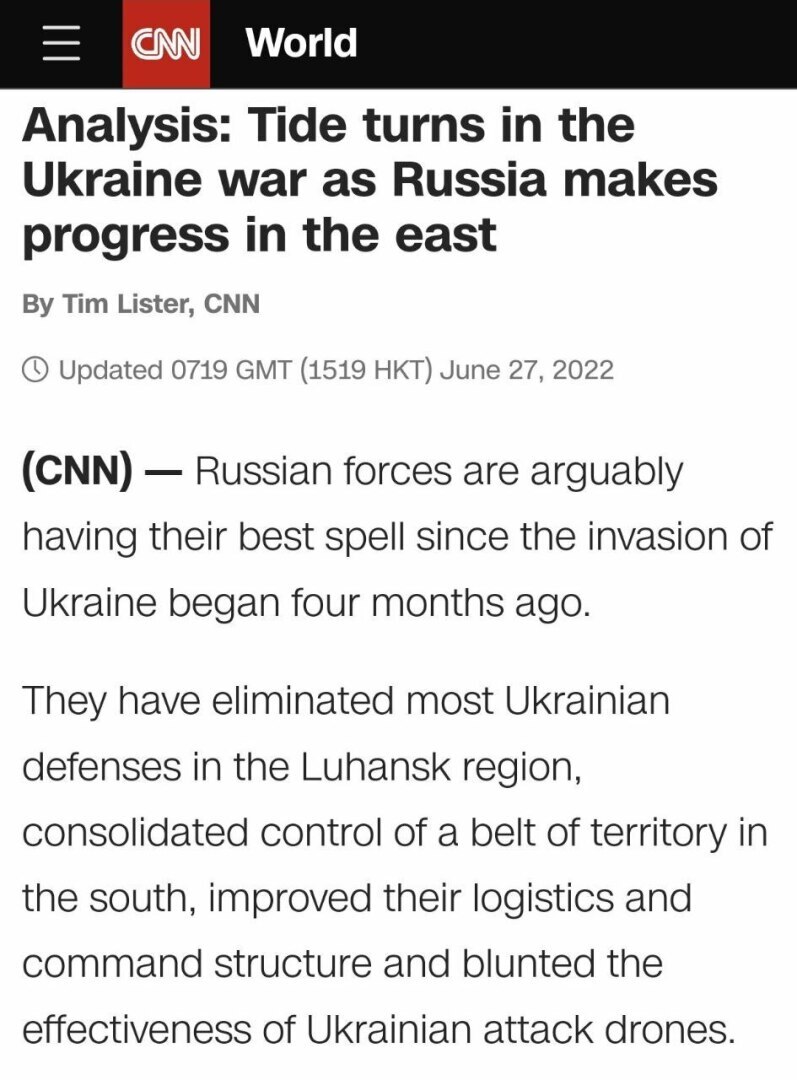 "Российские силы, возможно, переживают лучшие времена с тех пор, как четыре месяца назад началась спецоперация на Украине", - пишет CNN.