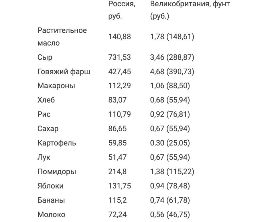 Как Россия обогнала Великобританию по ценам на продукты питания: таблица цен для сравнения. Сравниваем, анализируем, рассуждаем