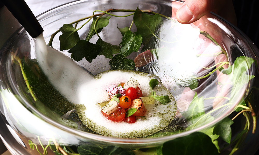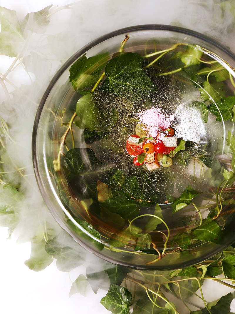 Объединяя японский и французский кулинарные стили с использованием корейских ингредиентов, шеф-повар Тэ-Хван Рю из Ryunike предлагает уникальный гибрид кухни. Его вдохновение проистекает из восьми лет, которые он провел, путешествуя и работая в звездных ресторанах Мишлен по всему миру, включая Японию, Испанию, Италию, Австралию и Великобританию. Сегодня мы представляем вам блюдо, вдохновленное его опытом в Испании: восточный суп из дыни H2CO3.