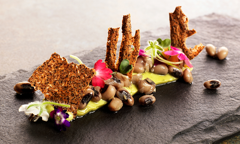 «Это блюдо в одном из блюд нашего нового дегустационного меню в Майдо. Все меню вдохновлено перуанской Амазонкой, имеющей огромное биоразнообразие. Немногие знают, что существует огромное разнообразие местных амазонских бобов. Во время одной из моих поездок на Амазонку я увидел их, у них красивые цвета и отличная текстура, поэтому я решил воздать должное этому удивительному продукту. Хрустящая черная киноа, крем из авокадо, гель Понзу, амазонские бобы, кофейная крошка и айва составляют блюдо. Взрыв вкусов и текстур.¨