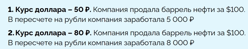 Сейчас доллар стоит меньше, чем планировалось. Поэтому страна получает меньше рублей. Ситуацию спасает уровень мировых цен. Товары, которые Россия поставляет за границу, подорожали, и это компенсирует слабый доллар.