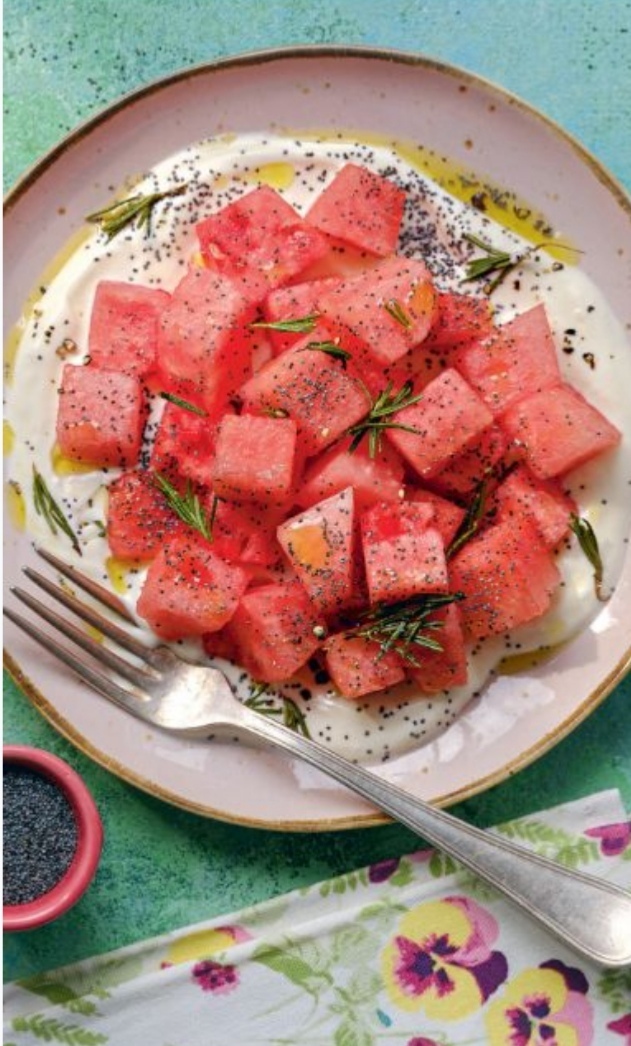 АРБУЗ С ЙОГУРТОМ. МАКОМ И ХРУСТЯЩим РОЗМАРИНОМ