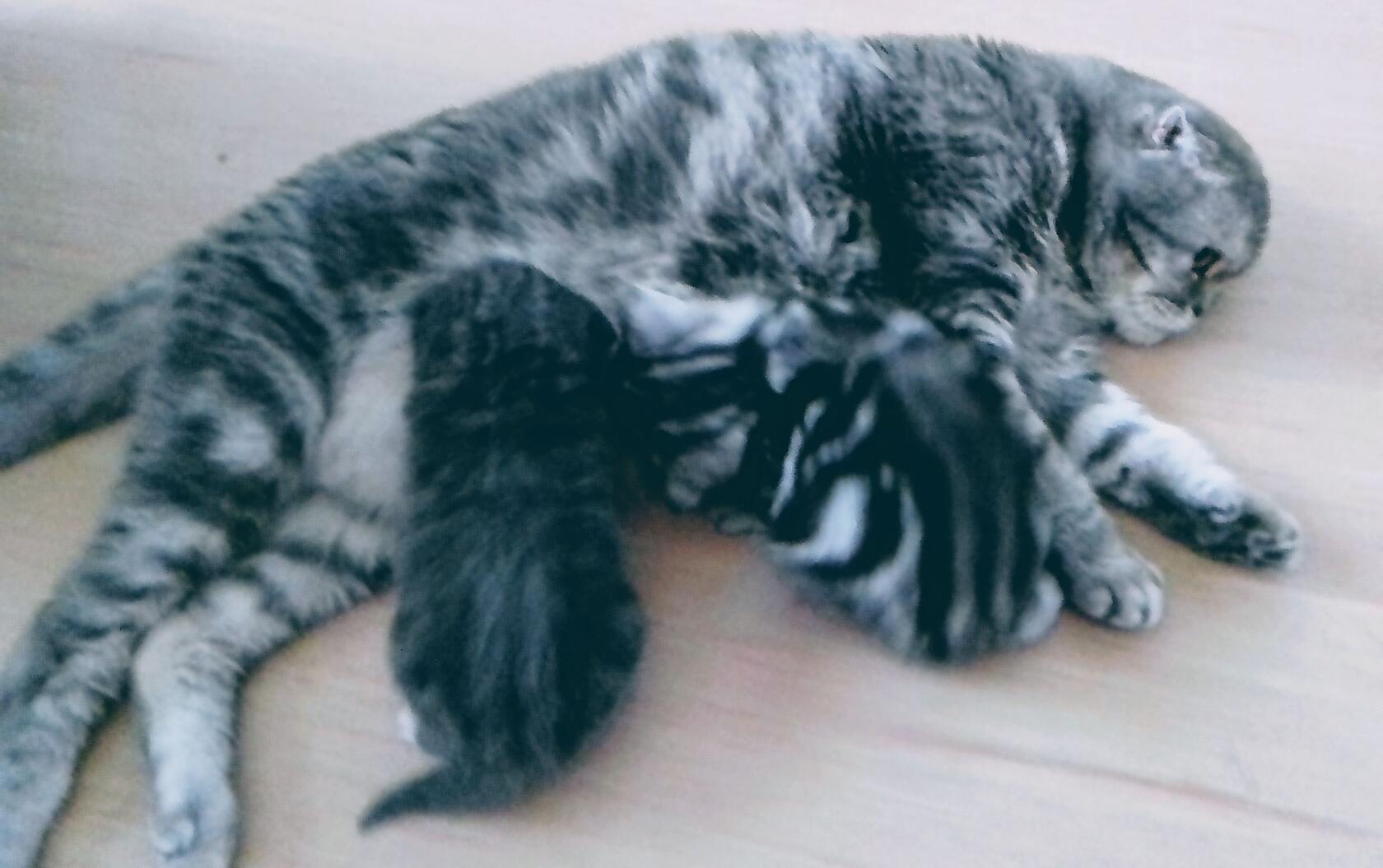 В начале июня я рассказывала, что шотландская вислоухая кошка Бусинка принесла приплод: два милых пушистых комочка с хвостиками.