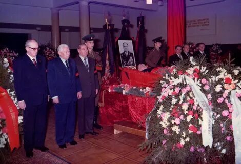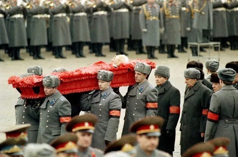 Примечательно, что первым за гробом К. У. Черненко идёт М. Горбачев....
