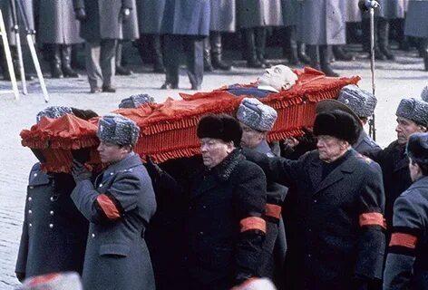 Вот именно Горбачёв просто идёт и ничего не делает, а Черненко нёс гроб Андропова, во всяком случае или делал вид, что несёт, или держался за него, чтобы не упасть.