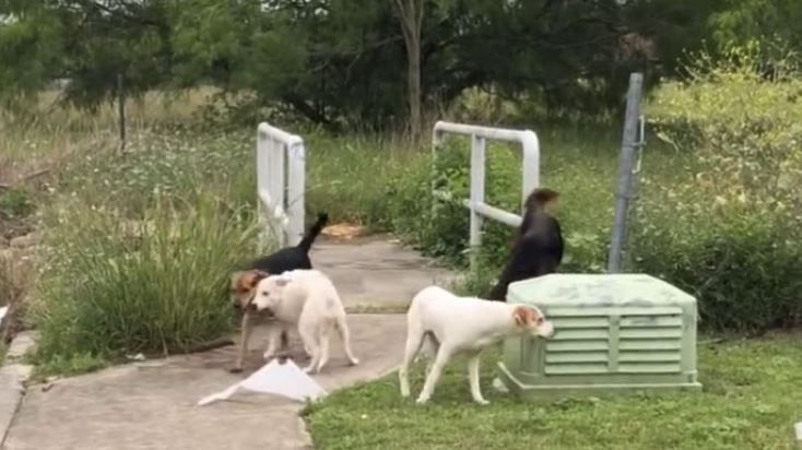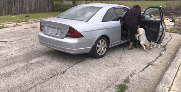 Женщина остановила своё авто в конце поселения штата, где не было людей и никто за ней не наблюдал. Она открыла двери автомобиля и оттуда выскочили четыре собаки. Последней она ещё дала пенделя, чтобы та, побыстрее шевелилась.