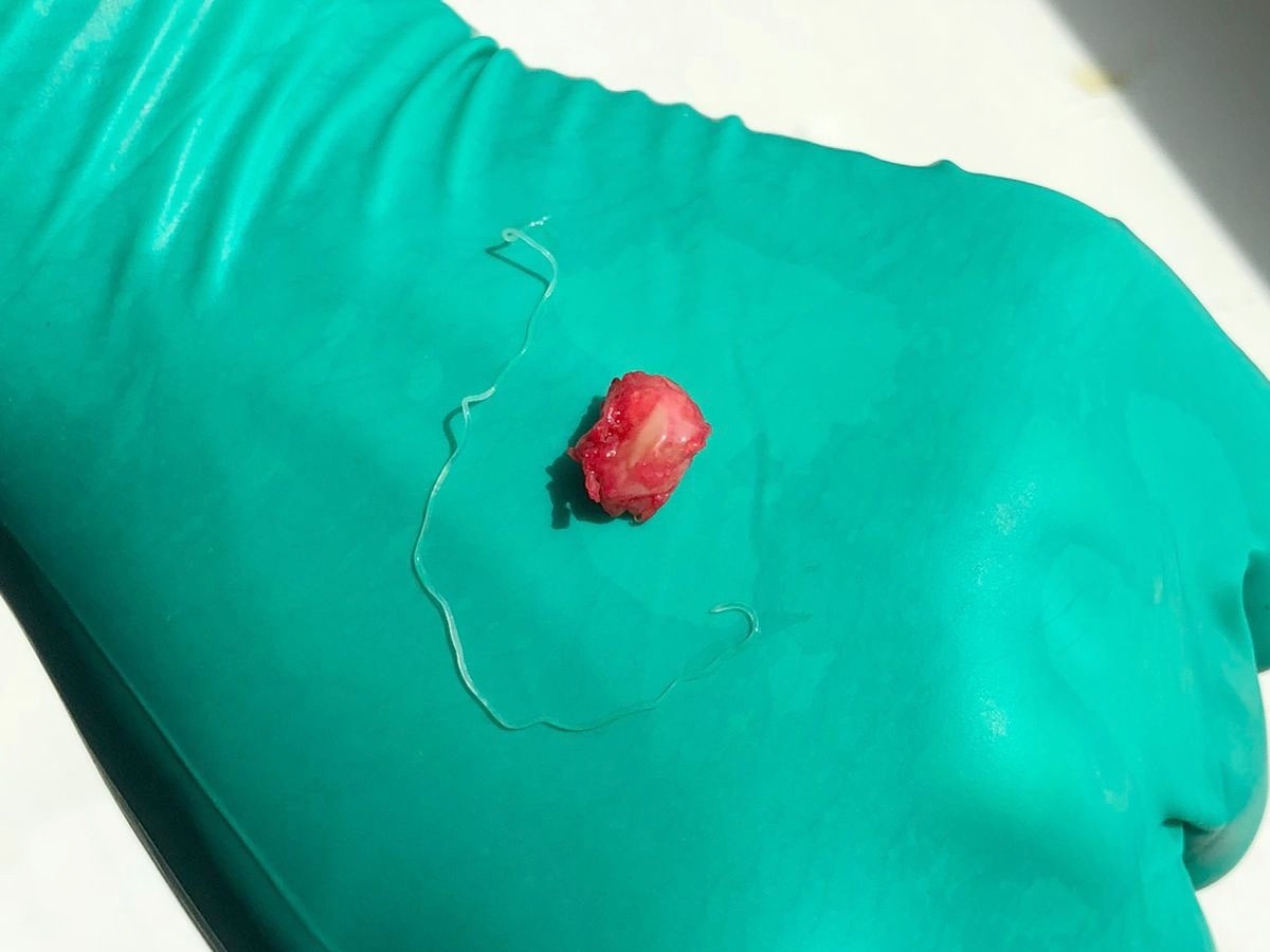 Итог шокировал как пациентку, так и врачей. Виной болей и зуду стал, червь вида Dirofilaria repens – сердечный глист. Одной из особенностей этого паразита является его перемещение под кожей носителя. За сутки личинка может передвинуться по телу на расстояние до тридцати сантиметров. При этом носитель не чувствует боли, когда личинка движется под кожей. Бывали случаи, что терапевты вместо ультразвукового исследования, отправляли пациентов к психиатру, ведь люди жаловались на то, что под кожей кто-то ползает.