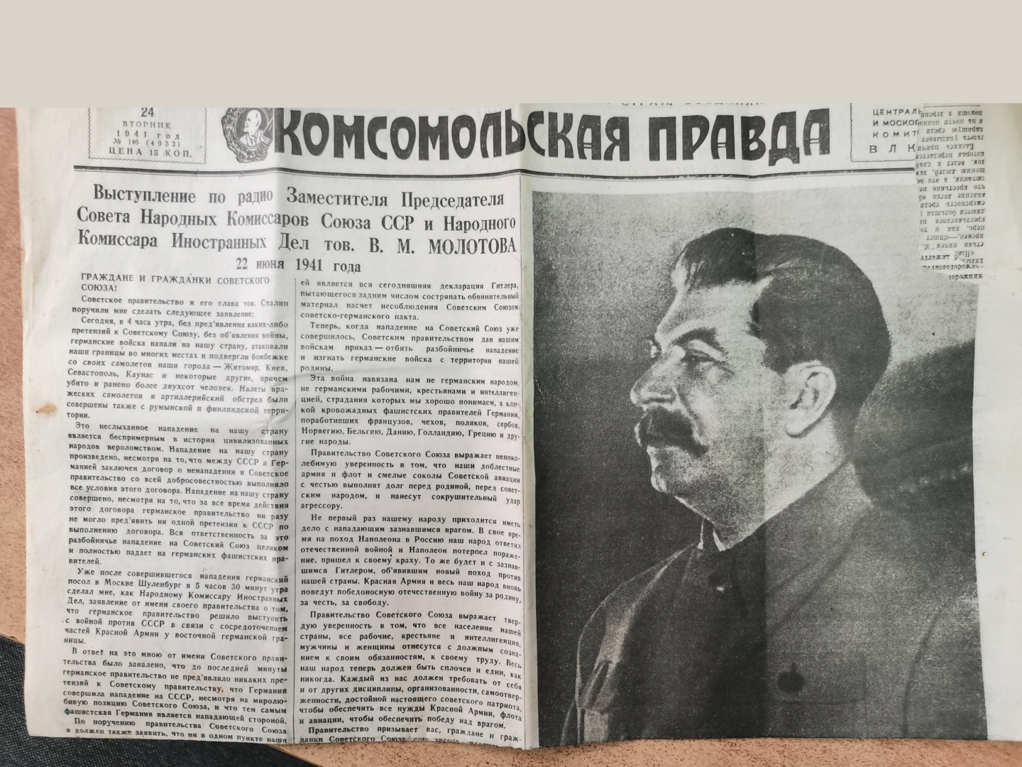 Газета «Комсомольская правда». Начало Великой Отечественной войны. Заявление Молотова В.М. о вторжении. Сохранение памяти о подвиге.