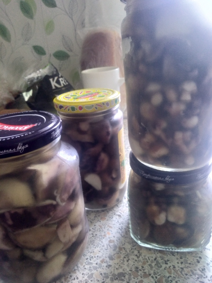 Перец горошек, лавровый лист чеснок и корень хрена кладу непосредственно в стерильные банки. Раскладываем грибы по банкам, не туго, примерно на 2/3 , грибы должны чувствовать себя свободно, заливаем маринадом горячим и закатываем. Переворачиваем и оставляем до полного остывания. Хранить в прохладном месте. Я храню в холодильнике, зато всегда под рукой 😁.