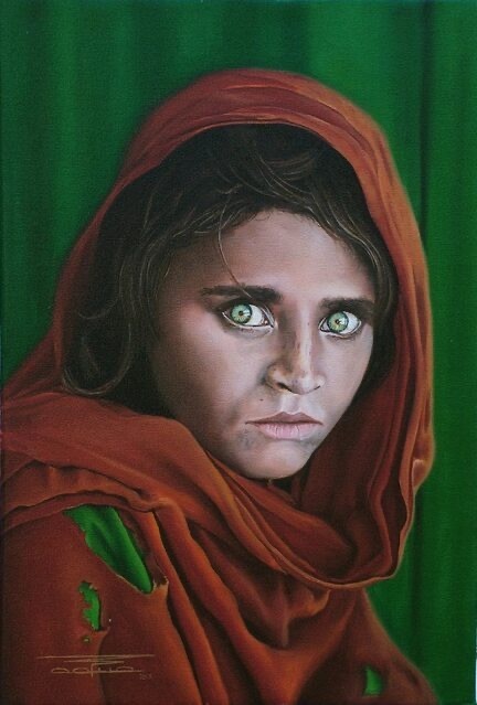 « Афганская девочка» это фото сделал фотограф Стив Маккари, в лагере афганских беженцев недалеко от Пешавара , Шарбат Гула стала известна почти как Мона Лиза.