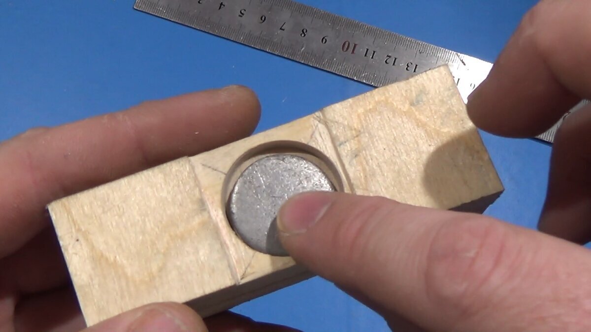 Углубление нужно сделать побольше, т.к. по мимо гайки туда будет вставляться металлическая пластина, можно использовать и монетку. Эта пластина будет фиксировать линейку, нужна она для того что бы болт не царапал линейку.