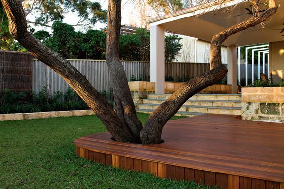 Что вы делаете со взрослым деревом на заднем дворе с широко раскинутыми ветвями? Вместо того, чтобы оставить область под деревом голой, Tim Davies Landscaping построил вокруг нее террасу. Это дает домовладельцам этой собственности во Флореате, Австралия, больше места, чтобы наслаждаться своим двором, и обеспечивает потрясающую демонстрацию архитектурных ветвей дерева.