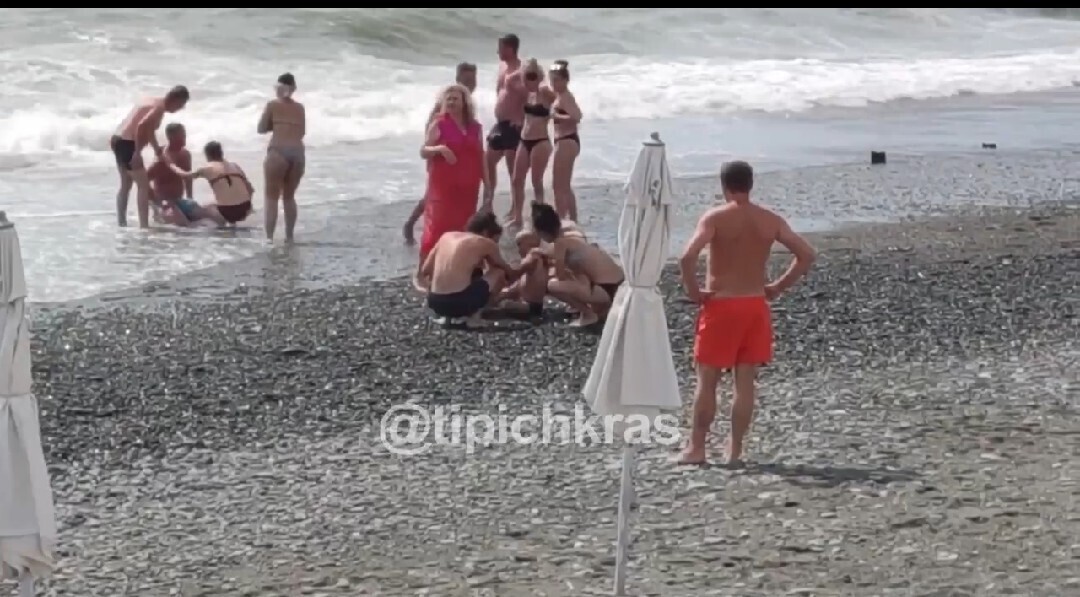 Это произошло днем 12 июля на пляже «Огонек» в Сочи. Судя по всему, самую высокую порцию стресса получил мужчина, который выловил мальчика из воды и вынес на сушу.