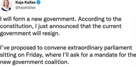 Премьер-министр Эстонии Кая Каллас публично подала в отставку.
