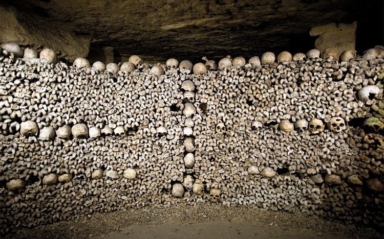 Парижские катакомбы были построены в конце 18 века римлянами, которые испытывали переполненность своих кладбищ. В связи с растущим беспокойством по поводу общественного здравоохранения тела от шести до семи миллионов человек были перемещены в новое место захоронения. Сегодня посетители могут исследовать часть катакомб, в которых кости расположены в искусной конфигурации. Хотя большинство туннелей остаются закрытыми, многие люди нарушают правила и продолжают свой путь. В 2004 году полиция действительно обнаружила подземный кинотеатр, расположенный в одном из тоннелей.