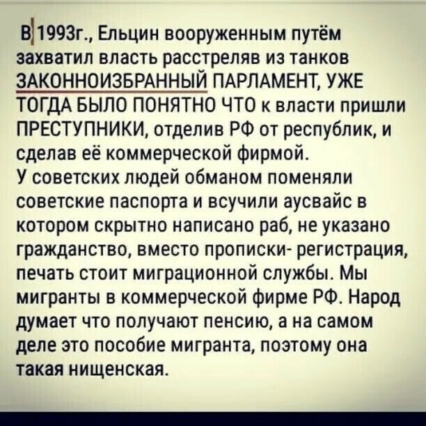 Ненужно путать рф с Россией.... Это разные вещи! Россия это страна, рф – псевдогосударство. Какие пенсии мы ждём от рф? Нам и сейчас их никто не платит! Это социальные пособия, и только а не то что мы зарабатывали всю жизнь!