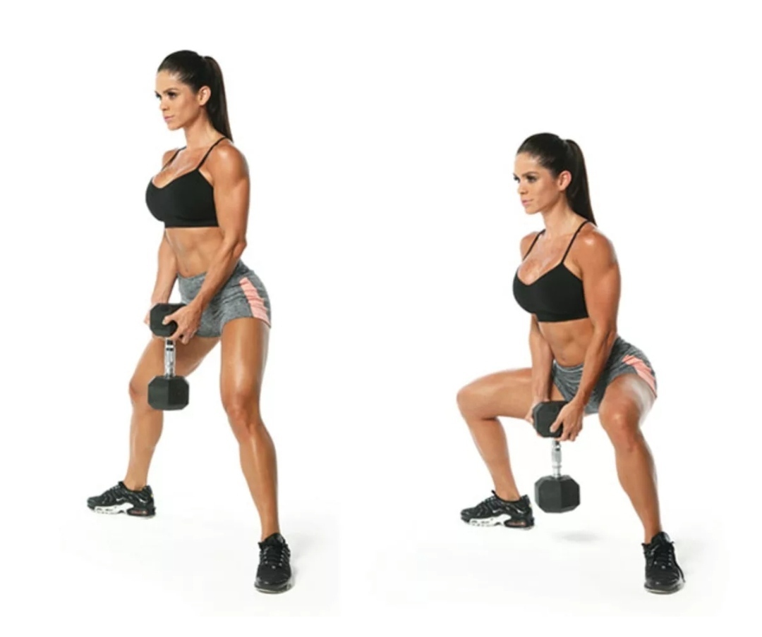 Эти приседания можно выполнять как со штангой или гантелью, так и без них.