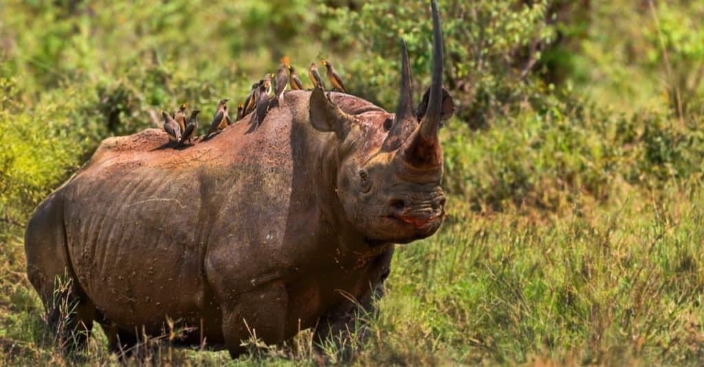И черный, и белый носорог серые, но у черного носорога заостренная верхняя губа, а у белого — квадратная. Прежде чем вы подойдете достаточно близко, чтобы увидеть, кроме как в бинокль, вы можете подумать, что черные носороги очень непредсказуемы, что делает их очень страшными животными.