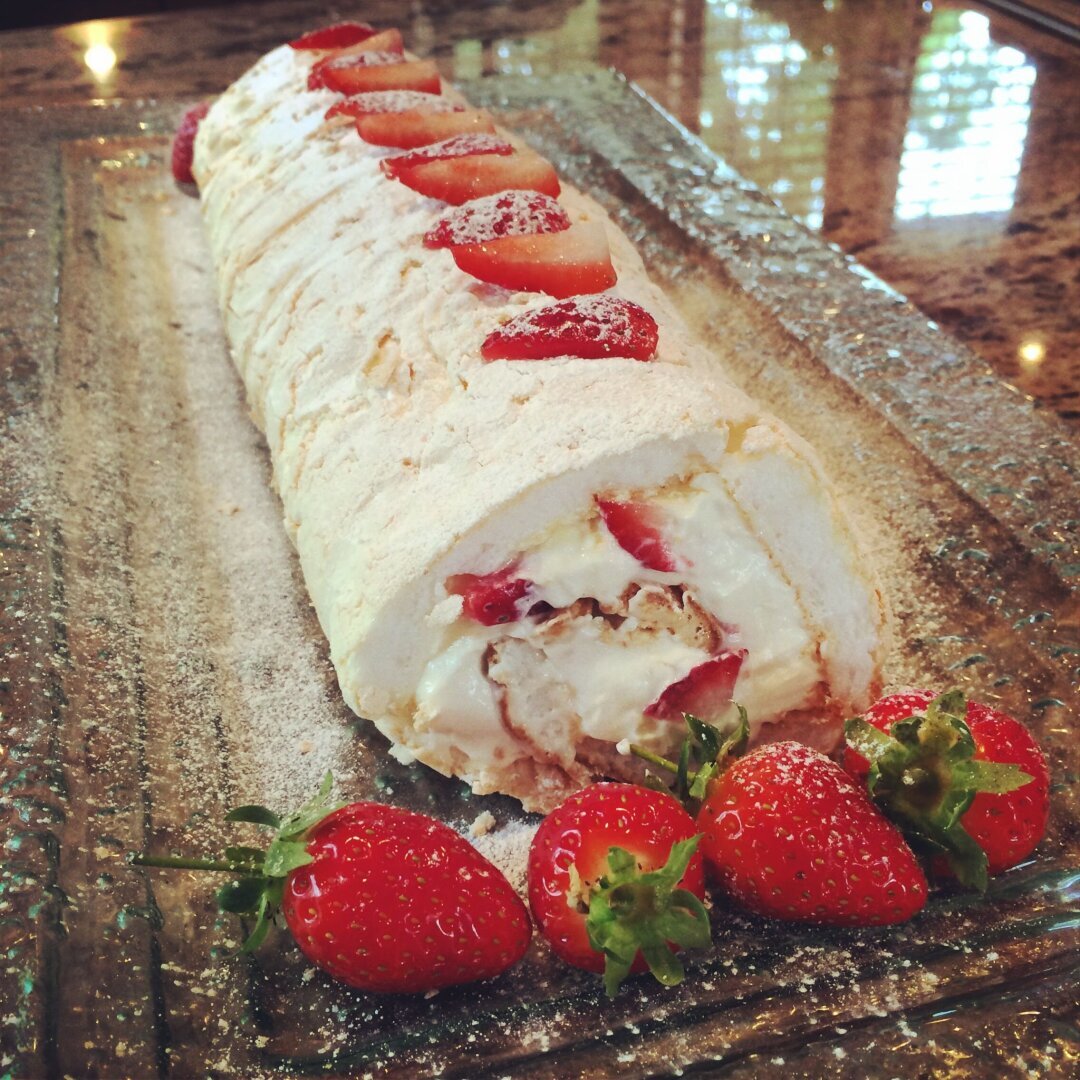 Меренговый рулет с клубникой