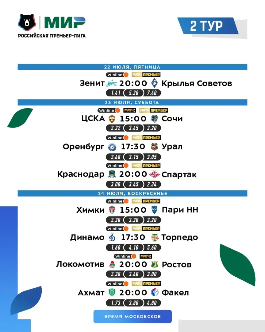 Расписания 2 тура РПЛ