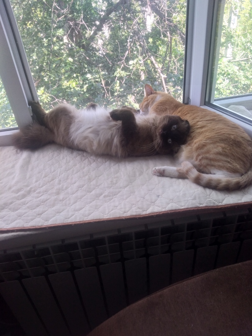 Котёнок 2- х летний, по имени Пуша. Родился единственным и неповторимым у своей кошачьей мамы Лиссы. Ходила она, как коробочка, квадратиш....практиш....хорошееенькая, думали штук 5 минимум будет котят. А оказался один, блин, богатырь 😻. Рост 14 см, размер в ладонь, белый был как вата медицинская. Мы удивлялись, в кого такой?. А потом началось, через месяц стал слегка сереть, потом загрязнился носик, немного ушки и морковка-хвостик. Шерсть постоянно дыбом, как будто начес ему сделали. Неслух, каких только поискать надо, везде где нельзя, то он там. Мать не успевала его тянуть на место, которое было им определено. Вот представьте себе его размеры, она его тащит за шкирку, а сам он тащится по полу, почти под её пузом. Вот так он рос, рос и вырос в шикарного пушистого кота. Шерсть шелковая, нос курносый в профиль 😁, колтунов нет априори, представляете, такой антистресс. Лично у меня , когда его вижу, мне хочется его пожамкать, взять на ручки и...., как говорит, моя дочь, передутый в одно охвостье котя. Хотели его вначале отдать в хорошие руки, как говорится. Но, подумала, подумала и решила, семью поставила перед фактом, Пуш остается с нами, третьим котом. Папа немного поворчал, дочь визжала от радости, но если мама решила и постановила...😄🤗, то переубедить её трудно. Правильно? И если честно, ни разу не пожалели о том, что он с нами остался. Как был задира, такой он до сих пор и есть. Мать, которая кошка, пищит от него, рычит и дерет его, иногда очень сильно, но ....ведь ему неймется, сам к ней лезет постоянно, а потом бежит ко мне и начинает жаловаться на нее, а жалуется, так интересно, что-то курлычет, муркает, мявкает таким нежным голоском, что кто его слышит думают, что он стерилизованый. Но на самом деле нет, если честно очень боимся это делать, у него несколько раз были приступы эпилепсии, и это ребята, очень страшно. Ветеринар назначил, только поддерживающую терапию, у нас она неизлечима, генетическое отклонение,. Так что, правильное было мое интуитивное решение оставить его себе. Даже представить не могу, что с ним было бы там.... Ладно, не будем о грустном, все у нас отлично. ТриКотаж нас радует, веселит и иногда лечит, вот как то так. Фото ниже: