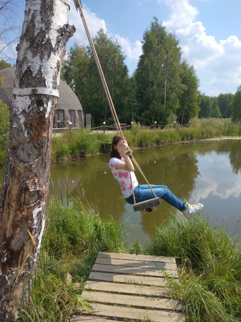 Есть даже качели. Место напоминает сказку "Алёнушка".