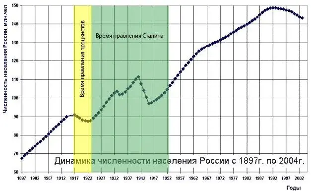 ЯН ты из так=нка то вылези, и посмотри статистику , когда при Сталине , не смотря на военные потери в 20 миллионов -население выросло в полтора раза..