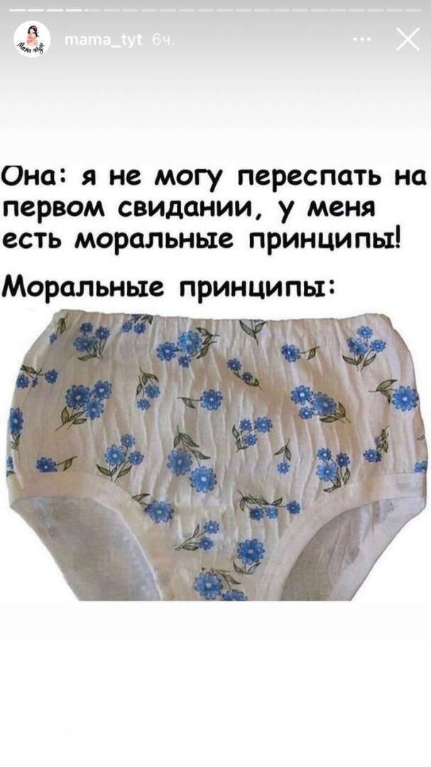 Чудесные моральные принципы: х/б,на резиночке,без царапающих кружевов.Даже если кто покусится-офонареет и забудет,что хотел