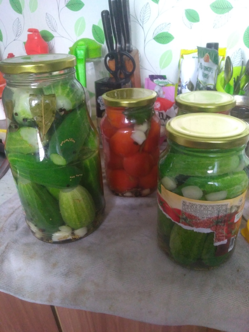 Вот и наступило время, когда можно начинать заготовки на зиму. Огурцы наросли, помидоры покраснели, зелень тоже прет. Собрали сегодня огурчики, помидорчики и решила их закатать по своему фирменному рецепту. Семейство моё было немного против, хотели съесть здесь и сейчас, но у меня правило такое, закатывать пока все красивое и ровненькое. А уж потом, как говорится, наедимся от пуза 😁.