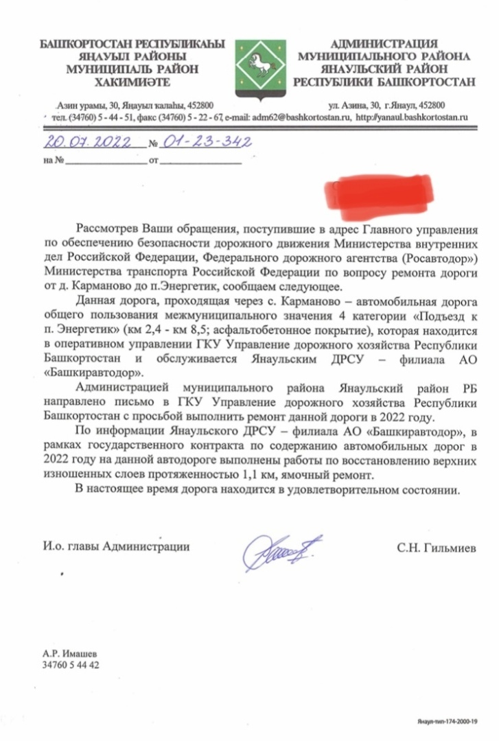 Но второй ответ, а именно из ведомства МВД Башкортостана полностью опроверг доводы отписки районного чиновника, так как они отнеслись к проверке ответственно: