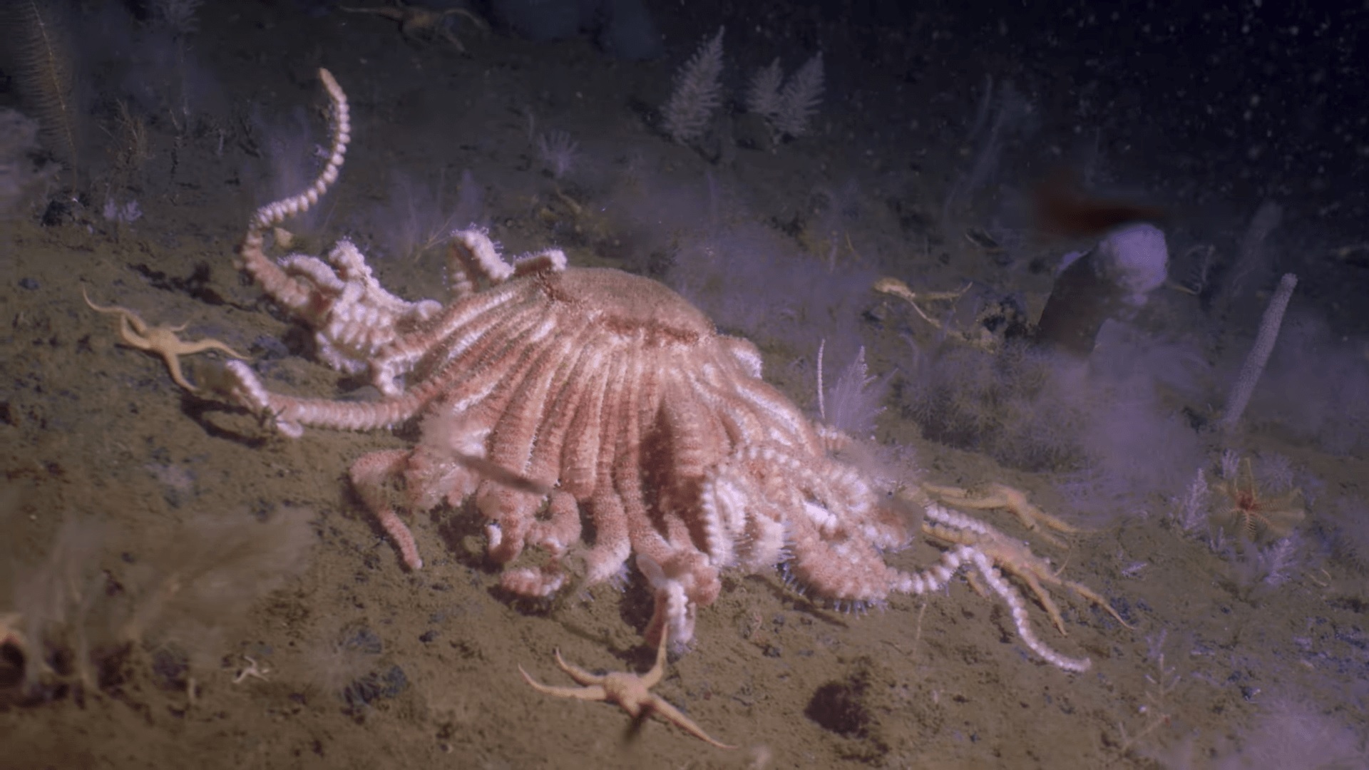 В других океанах рыбы являются доминирующими хищниками, но Звезда Смерти здесь, чтобы показать нам, как обстоят дела в Антарктиде. Поскольку вода в этом районе очень холодная, рыба там не процветает. В результате беспозвоночные, такие как антарктическая солнечная звезда, занимают вершину пищевой цепи.