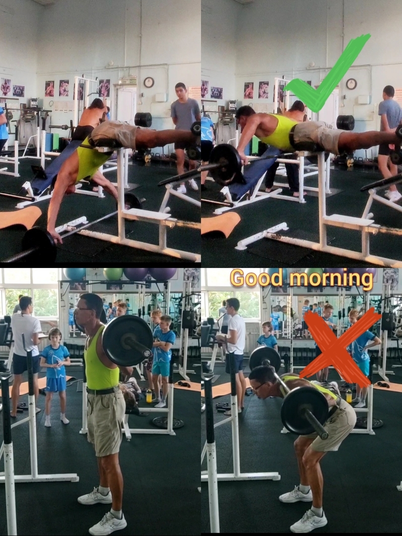 «Гуд Монинг» не для всех упражнение. Вы правы. На фотографии очевидное нарушение техники. Штанга в области шеи лежит, имея тенденцию к скатыванию в сторону головы. Отсюда, из-за слабости мышц, выпрямляющих позвоночник в грудном отделе, происходит «скругление» грудного отдела, и то что вы уже описали в статье