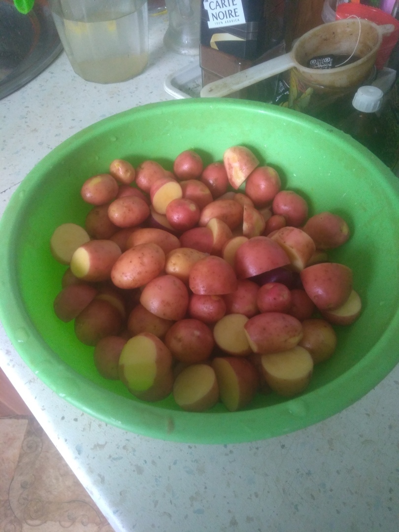 Сегодня я хочу поговорить о картошке, о самой обыкновенной, вкусной картошечке. Все из школьной программы знают, что в России, картошка появилась благодаря императору Петру Первому. В нашей семье это один из самых любимых овощей, мы постоянно её запасаем на зиму, если есть картошка, то зима , как правило проходит веселее и сытнее 😁🤗. 3 года назад, мы решили завести небольшой садовый участок, так называемая попытка # 2. Садовый участок нашли, немного облагородили, и понеслось .... Рассада такая, рассада сякая, ну и 0,5 сотки распахали под картошку. Немного, но чтобы летом и в начале осени поесть её свеженькую в охотку, так сказать. На зиму покупаем от 4 до 6 мешков, на семью из 4 человек. Конечно же у меня есть множество рецептов для приготовления картошки, с одним из них я хочу Вас познакомить.