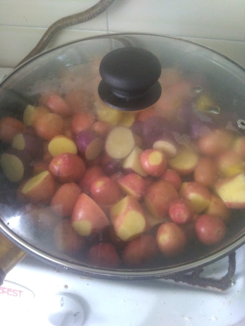 Начну с того, что когда начинаешь подкапывать картошку, то в гнезде, как правило, много мелкой картошки, которую называют- горох. Домашней "скотины " нет, триКотаж у нас на "сушке". Правда, когда они сунули свои любопытные моськи в ведро, в котором была свежая картошка, потом посмотрели на меня таааким взглядом, типа...чё за фигня здесь такая....Я в шутку предложила им это, и их негодующие глаза....🙀а взгляд масенького....был😾 такой, что я решила спрятать тапки подальше 🤣, ну так 🤔 на всякий случай.