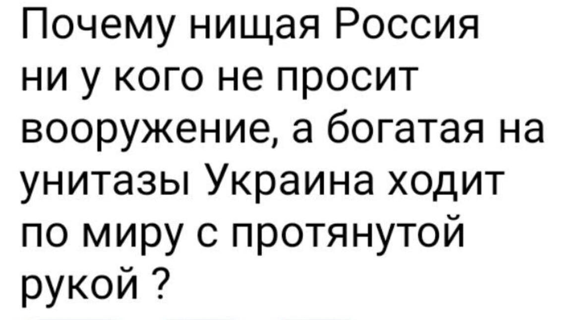 Ха ха ха, было бы ещё что разваливать, у вас же уже давно нет единства в стране и спецоперация это показала. У вас сейчас кто воюют: безумные фанатики-националисты, войска всу, так как обязаны это делать и тот кто не смог отмазаться от мобилизации и вовремя сбежать. Всё остальные убежали или прячутся или заплатили кому нужно чтобы их оставили в покое. Вот вам и единство. У вас уже давно всё развалено.