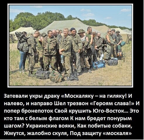 гы гы, так хохлов нет - их Бисмарк придумал, есть Бандеровские пе....ы, после приёма наркосодержащих друг друга имеют, а с самыx слабых кожу снимаюь, то Сашко мечтает в Брянские леса податься, спрятаться, но глупенький не подумал, потомки брянских партизан все равно отыщут и обреют.