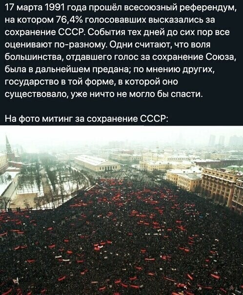 "Некоторые люди до сих пор считают, что прекращение СССР было нелегитимным. Что России не существует. Автор с этим не согласен, ...- А как же Референдум з сохранение СССР, в котором 80% населения проголосовало за сохранение СССР???
