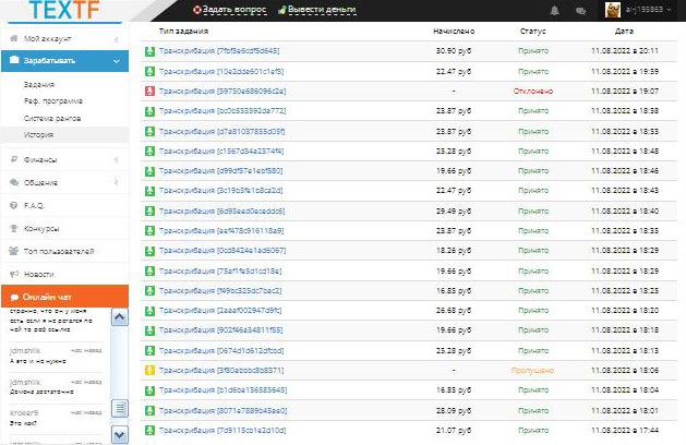 Задания на транскрибации. Мошеннический сайт заслуживает самого грубого тона… Сайт работает уже 4 месяца. Скольких обманули, разработчики сами не вспомнят. Здесь идет обдираловка. Вывести средства, заработанные честным трудом на этом мошенническом сайте невозможно. Модерирует вывод денежных средств бот, а не живой человек. Всегда отклоняет заявку на вывод средств, с просьбой внести активировать ту или иную позицию. Умно придумали...
